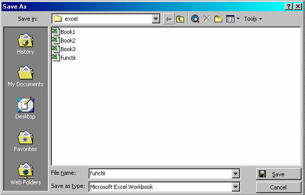 Nota: În Excel nu mai sunteti limitat la 8 caractere pentru salvarea fisierului. Mai mult puteti folosi si spatii în numele acestuia.