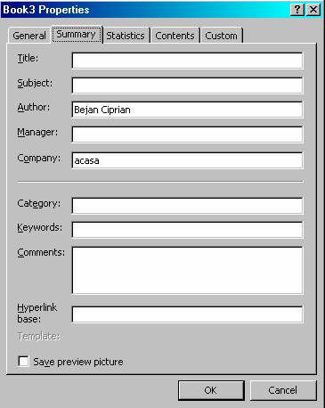 Pentru a salva un fisier împreuna cu fisa de proprietati