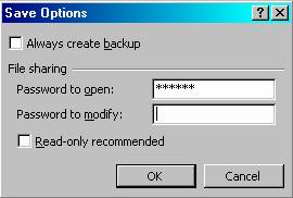 Introduceti o parola pentru protejare la deschidere (Password to open).