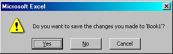 Efectuati clic pe butonul Yes daca doriti sa salvati modificarile, respectiv pe butonul No pentru a închide programul Excel fara a le salva. De asemenea, efectuati clic pe Cancel daca doriti sa reveniti la registrul de lucru.