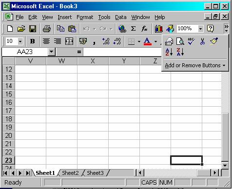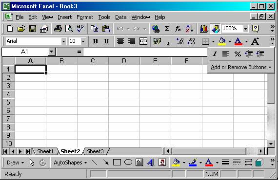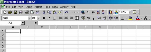 Efectuati clic pe butonul New din bara de instrumente Standard. Programul Excel va deshide un nou registru de lucru, având A1 drept celula activa.