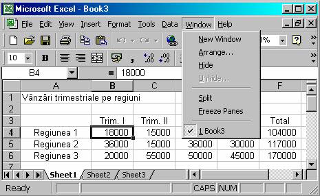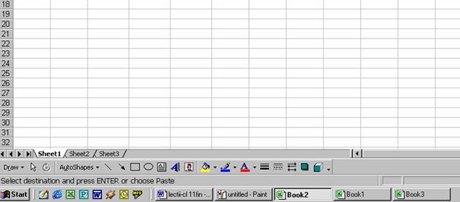 Efectuati clic pe Book 1 de pe bara de taskuri; astfel, acest registru devine activ.