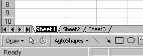 Daca aveti mai multe foi de lucru decât cele trei prestabilite, puteti defila de la o eticheta la alta folosind butoanele amplasate în coltul din stânga jos a foii de lucru.