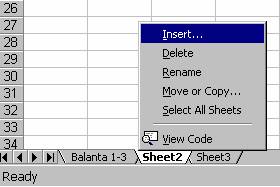 Efectuati clic înaintea foii de lucru de lânga care doriti sa introduceti noua foaie de lucru.