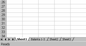 Introduceti noul nume (de exemplu Balanta 1-3) si apasati tasta Enter. Programul Excel va afisa noul nume în eticheta foii de lucru.