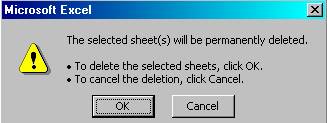 Efectuati clic pe butonul OK pentru a confirma stergerea. Foaia de lucru si toate datele incluse în ea vor fi sterse.