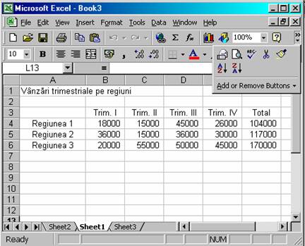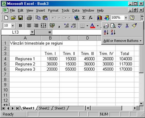 Efectuati clic pe eticheta Sheet 3 pentru a vedea continutul foii de lucru.