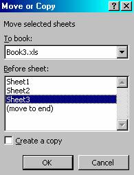 Selectati Edit, Move or Copy Sheet (deplasarea sau copierea foii) pentru a deschide caseta de dialog Move or Copy (deplasare sau copiere).