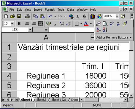 Nota: În mod prestabilit, un registru de lucru include trei foi, dar puteti insera mai multe foi de lucru. De exemplu, puteti folosi o foaie de lucru pentru fiecare trimestru de vânzari, precum si o foaie de lucru pentru total. În acest exemplu aveti nevoie de cinci foi de lucru.