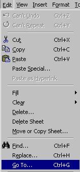 Selectati Edit, Go To pentru a deschide caseta de dialog Go To