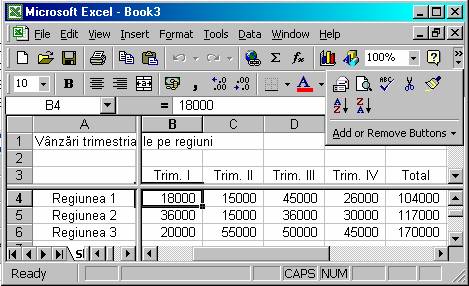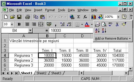 Deplasati-va în foaia de lucru (folosind tastele sageti) si observati ca rândurile si coloanele sunt fixate, deci puteti face referire la date folosind titlurile adecvate.