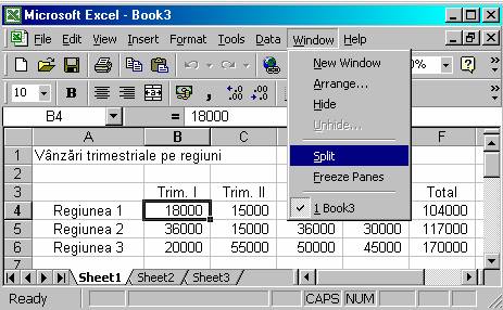 Efectuati clic în celula amplasata în dreapta si dedesuptul regiunii pe care doriti sa o fixati (de exemplu B4