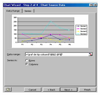 La ultimul pas alegem locatia viitorului grafic: "As object in " - includem graficul īn pagina curenta sau "As new sheet" - includem graficul īntr-o noua pagina. Dupa alegerea locatiei selectam FINISH.