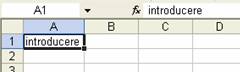 Inserarea informatiilor se poate realiza în celula activa. Daca se efectueaza un clic de mouse, celula respectiva devine activa. În acest moment se poate începe introducerea informatiilor în celula. În momentul actionarii unei taste caracterul corespunzator va fi afisat în celula respectiva. În linia de stare, textul Gata este înlocuit cu textul Introducere (starea actuala este cea de editare). În interiorul celulei se afiseaza punctul de insertie (o liniuta verticala sclipitoare). Caracterele tastate apar atât în interiorul celulei active, cât si în bara de formule.