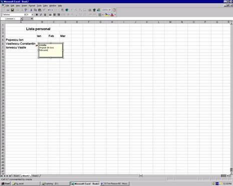 Executati clic pe un cuvânt din PickList pentru a-1 însera în celula selectata.