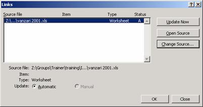 Daca registrul sursa este deschis cand deschizi registrul dependent, formula este automat actualizata fara intrebari. Daca registrul sursa este inchis cand deschizi registrul dependent vei fi intrebat daca doresti sa actualizezi toate informatiile legate.