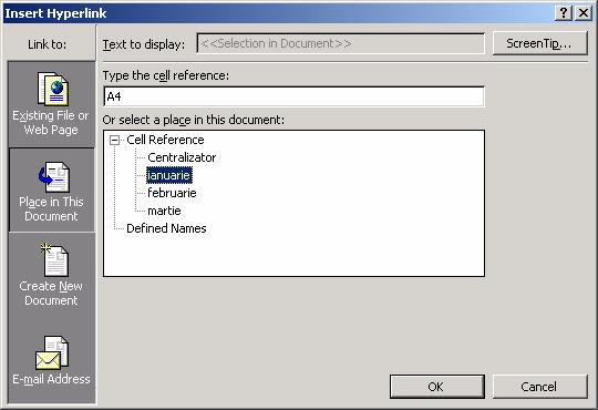 Executa secventa InsertHyperlink si selecteaza butonul Place in This Document (Plasare in acest document).