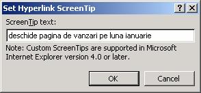 Alege butonul ScreenTip…(Sfat ecran) si introdu textul care vrei sa apara in indicatia de ecran cand vei indica hiperlegatura.