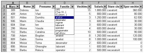 Avantajul utilizarii comenzii Autofilter consta īn faptul ca afiseaza dintr-o data toate īnregistrarile care satisfac criteriile specificate, sub forma unei liste al carui continut poate fi modificat, tiparit, formatat sau chiar sters dintr-o data.