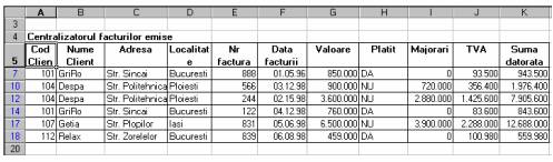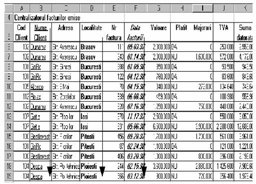 Interogarile bazate pe procedeul filtrarii avansate (Advanced Filter) sunt prezentate pe exemplul unei baze de date pentru evidenta facturilor emise catre clienti si urmarirea īncasarii facturilor.