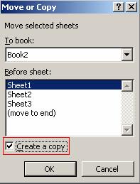Obs Executarea unui click pe optiunea Create a Copy creeaza un duplicat al foii active de calcul si il plaseaza in registrul de destinatie.