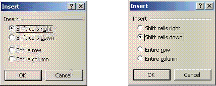 alege Shift cells right daca vrei sa inserezi celula pe
