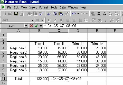 Puteti introduce în celula orice combinatii matematice (de exemplu C3+C4-D5).