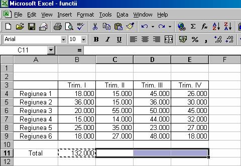 Nota: Uneori nu doriti sa utilizati AutoSum; în acest caz, puteti tasta formula dorita direct în interiorul celulei.