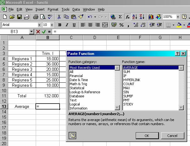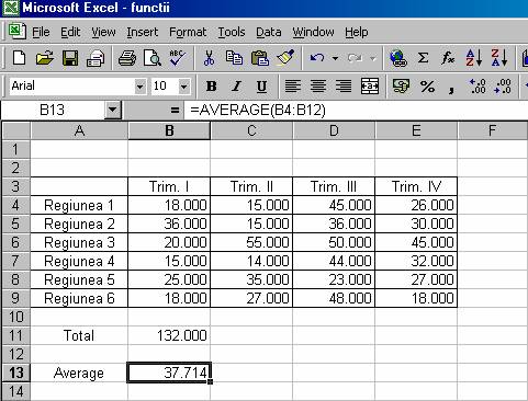 Efectuati clic în celula B13. Rezultatul functiei va aparea în aceasta celula.