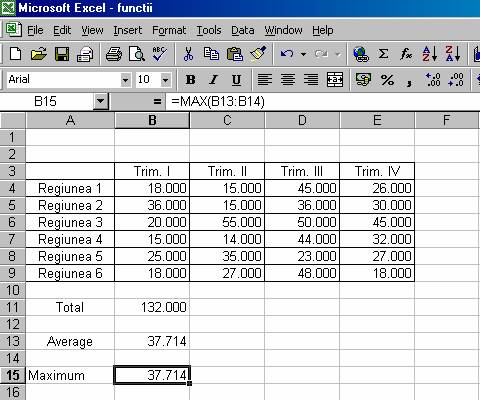 1. Efectuati clic în celula B15. Rezultatul functiei va apare în aceasta celula.