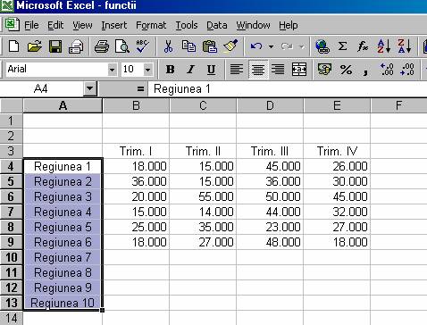 Eliberati butonul mouse-ului dupa ce a-ti completat domeniul dorit. Programul Excel va completa domeniul cu seria selectata.