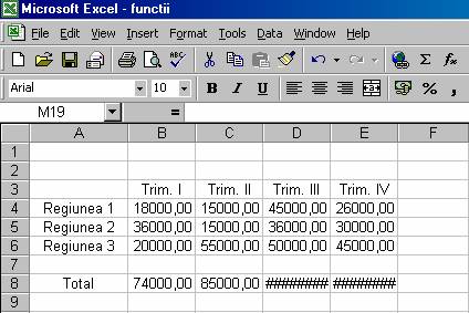 Nota: Când o celula contine simbolul ####, latimea coloanei nu este suficienta pentru afisarea datelor. Pentru a vedea continutul celulei, mariti latimea coloanei.