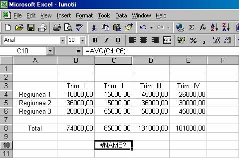 Apasati tasta Enter. Veti primi o eroare #NAME?, deoarece AVG nu reprezinta denumirea corecta a acestei functii.