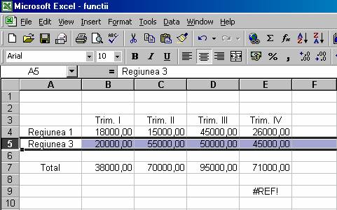 Nota: Când o celula contine simbolul #REF!, atunci formula contine o referinta la o celula care nu este valida. În mod frecvent, aceasta înseamna ca ati sters o celula la care s-a facut referire. Cea mai buna solutie este sa anulati operatia si sa reexaminati celulele incluse în formula.