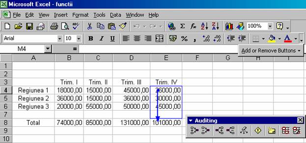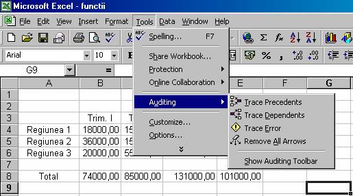 Selectati Tools, Auditing, Show Auditing Toolbar. Pe ecran va aparea bara cu instrumente mentionata.