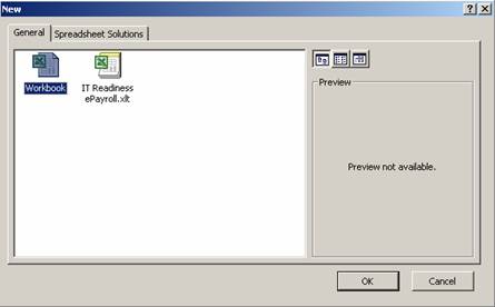 Cand apelezi la aceasta suita de comenzi se deschide o casuta de dialog care iti ofera posibilitatea sa deschizi un nou registru de calcul (accesand fisa General) sau un model implicit de registru de calcul care se numeste Template (accesand fisa Spreadsheet Solutions)