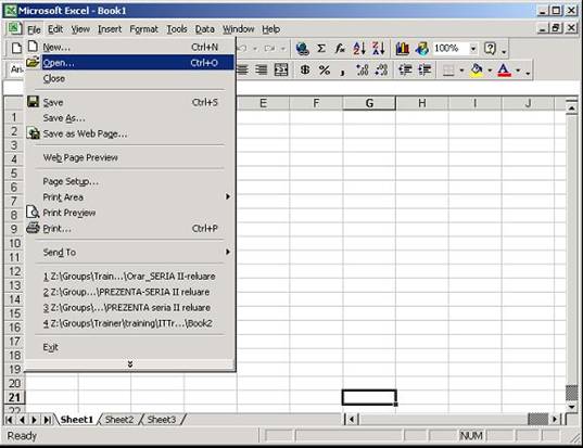 Deschiderea registrului de calcul se face daca apesi butonul Open. Daca vrei sa renunti la deschiderea unui registru de calcul este suficient sa apesi butonul Cancel.
