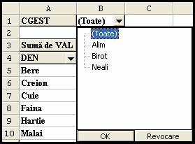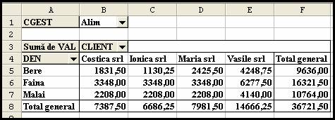 Fig 13.1b (Exemplu de raport pivot numai pentru depozitul de alimente)