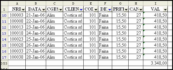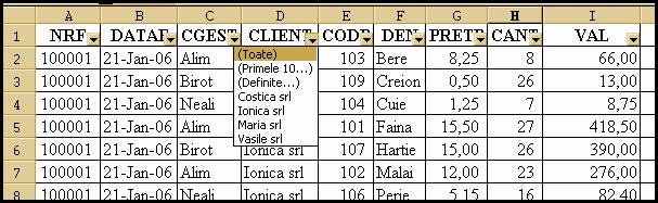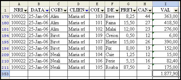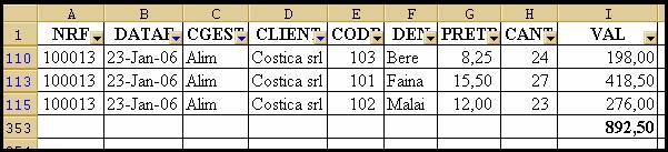 Fig 14.8 (Filtrate CLIENT = Costica si DEN = Faina. Câta faina a cumparat Costica srl?)