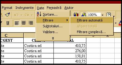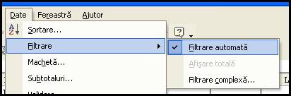 Faceti clic pe: Date Filtrare Filtrare automata vezi Fig 14.3
