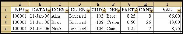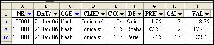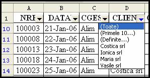 Nota: Se pot face filtrari pe mai multe coloane, dar într-o coloana nu se poate cere doua valori. Nu se pot cere doi clienti, sau doua depozite, decât în Filtrari definite.