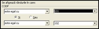 Greseala începatorului: Dorim sa fie afisate 2 coduri de produse: 101 si 102. Avem tentatia sa procedam ca în Fig 14.17, unde s-a bifat sI pentru ca dorim sa fie afisat si un cod si celalalt. Foarte bine, dar un produs nu poate sa aiba în acelasi timp si codul 101 si codul 102. Din aceasta cauza nu se va afisa nimic. Practic noi cerem sa se afiseze sau codul 101 sau codul 102, deci bifam SAU.