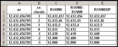 Sunt anumite functii EXCEL care realizeaza rotunjiri. Unele respecta regula de mai sus, altele nu, pentru ca introduc ele reguli speciale.