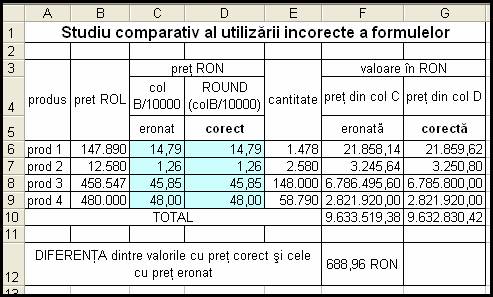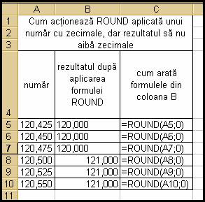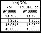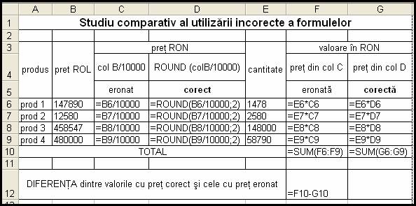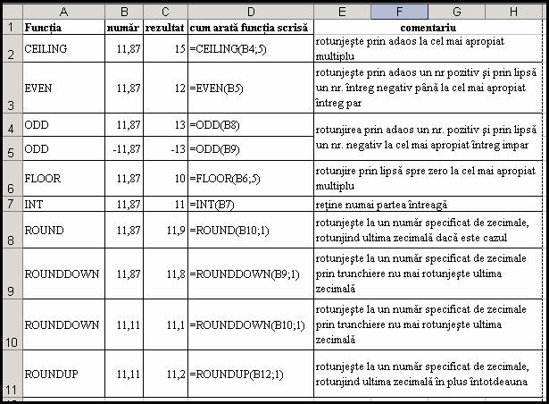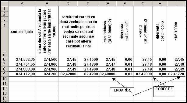 Se pune problema ce functie de rotunjire trebuie folosita pentru a avea acelasi rezultat corect. Formulele folosite se gasesc īn capul de tabel, dar si īn cele ce urmeaza:
