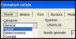 Facem clic pe ferestruica Number si apoi clic īn A2 (putem scrie direct A2 dar e mai usor cu "clicul"). Observati ca apare īn dreapta numarul 125659,2585.