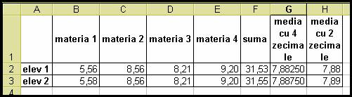 Daca nu suntem atenti si celulele H2 si H3 au formatarea pentru 2 zecimale EXCEL face automat rotunjirea si apar medii diferite, contrar regulamentului.