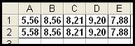 Mediile elevilor trebuie calculate "cu doua zecimale fara rotunjiri". Daca notele ar fi ca cele de mai jos, Fig 5.12, adica cu 2 zecimale cei doi elevi au aceiasi medie, (media fiind luata cu 2 zecimale), chiar daca elev 2 are o nota mai mare la materia 1. Primele 2 zecimale ale celor doi elevi sunt identice; pe ei īi diferentiaza cea de a treia zecimala de care nu se tine cont.