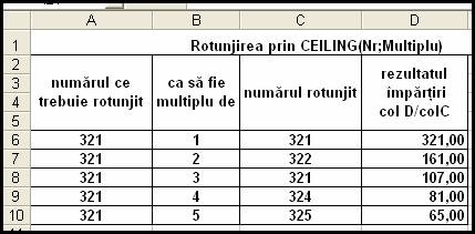 Adica un numar oarecare sau rezultat dintr-o operatie aritmetica sa fie rotunjit (ajustat) pentru a fi multiplu de (un numar oarecare) coloana B