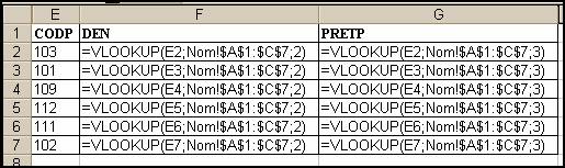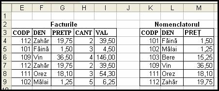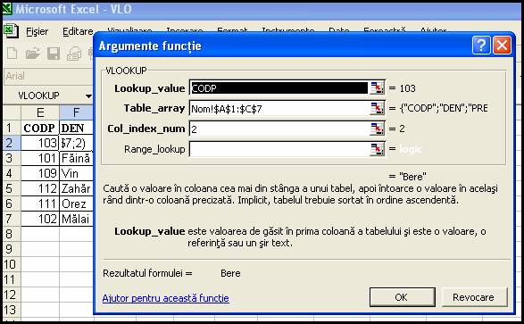 Observati īn Fig 10.7 ca facānd clic pe E2 īn ferestruica Lookup_value a aparut nu E2 ci CODP, numele coloanei, pentru ca a avut loc, īn prealabil, o redenumire a domeniului. Vezi Lectia 6.
