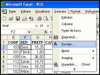Cautati iconita S sau īn meniul principal comanda Īnserare, apoi Functie si cautam VLOOKUP.